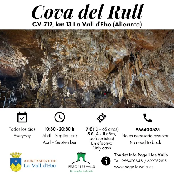 | Abr-Set | La Vall d’Ebo | Cova del Rull — Tots els dies 10.30-20.30 h (7 € / 5 €) |