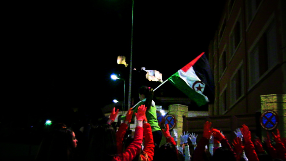 Cap a les nou i mitja de la nit començava un passacarrers després d’una “picaeta” al Pub “OtherTime“, amb batucada a càrrec de la Kolla d’Alterne i Percussió, de Banyeres de Mariola, i el grup de malabars Art de Circ. Durant tot el recorregut, poguérem gaudir del Ballet d’ Isabel Bellot amb una espectacular coreografia amb la bandera del Sàhara com a eix central de l’espectacle.