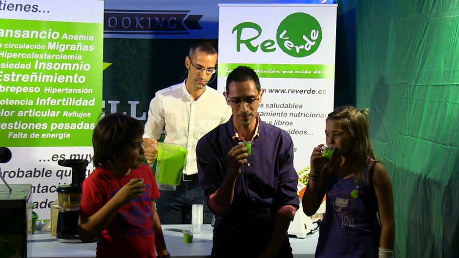 Daniel Blanco i Pablo Vidal, de Reverde, ens fan una demostració de com preparar uns batuts verds a la fira “Saborea Castalla”.